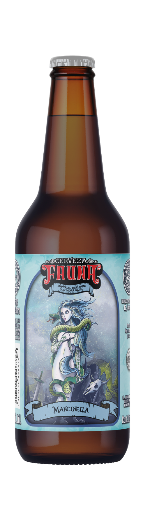 De lo más profundo del bosque el hechicero consiguió una mora azul especial. Con ella conjuró un remedio para el mal de amores en forma de brebaje: Mancinella, acidificada con lactobacilos y adicionada con espirulina azul y extracto de moras, nace esta Imperial Berliner de 5.0 ABVs y 0 IBUs (así es, cero).